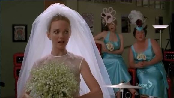 この第10話は、いろんなエピソードを盛り込んでいて、一つ一つは重い内容ですが、私の好きな Glee の描き方で、考えさせられる内容をサラッと描いています。すごく素敵な言葉があちこちに散りばめられていました。エマの結婚式の妄想シーンで、花嫁の後ろを歩く介添え役の二人の衣装は、イギリスのウィリアム王子とケイトさんのロイヤルウェディングをパロッていましたね!?
